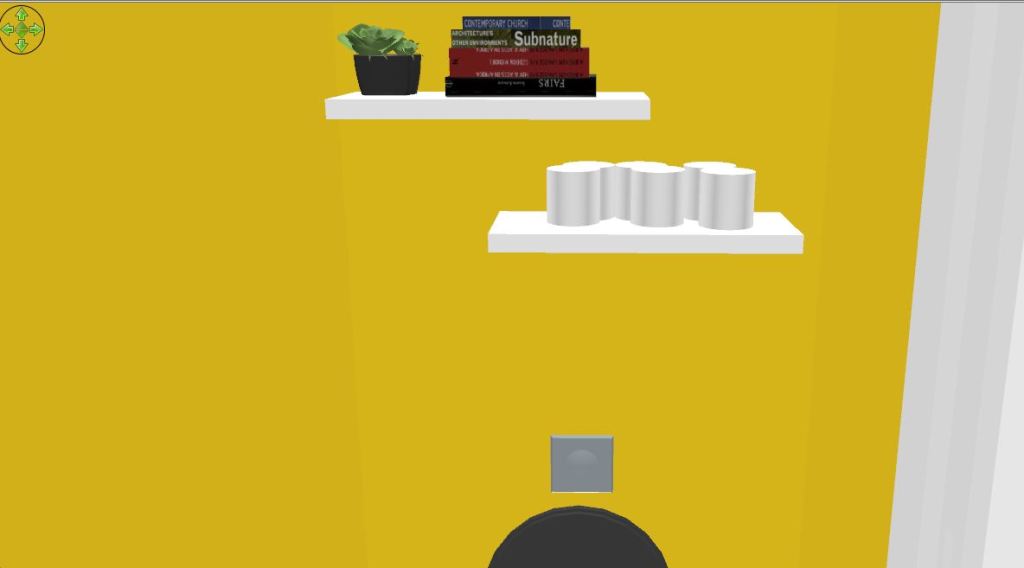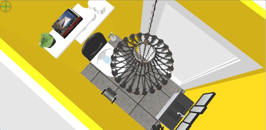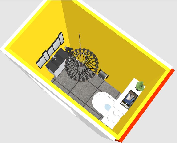 Les 4 murs sont peints avec une teinte Jaune « soleil » , type Dulux Valentine Jaune limoncello 7 ou soleil 7