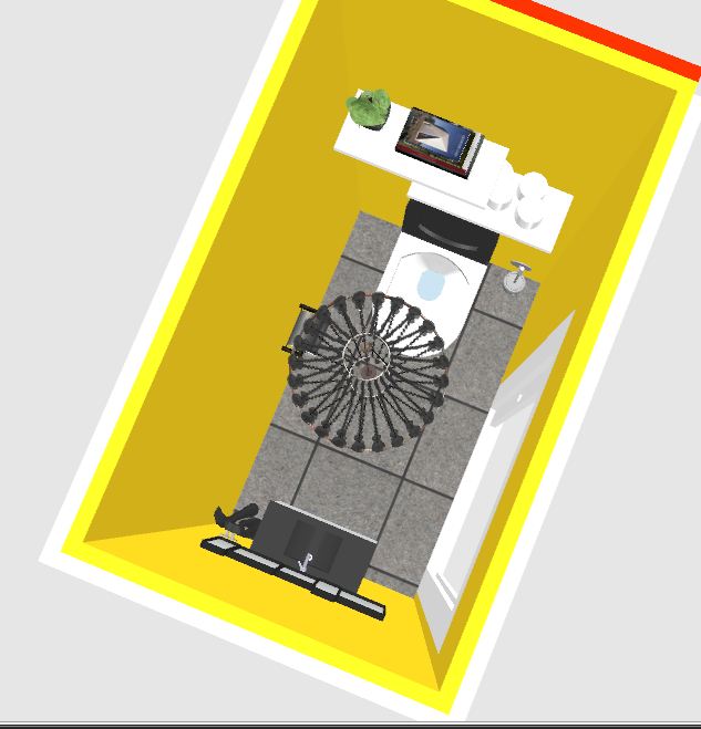 Oui, je sais, c’est flashy ! Mais pour avoir fait l’expérience personnelle de cette déco, c’est très stimulant d’aller au petit coin dans une pièce si dynamique !! Et… et … si décalée !! Tout le monde adorait et était surpris ! On joue l’esprit baroque chic avec le lustre à pampilles noir, moderne et que l’on ne s’attend vraiment pas à trouver dans cette pièce d’ordinaire assez délaissée niveau déco !!